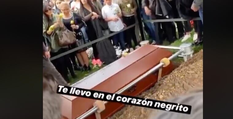 En el video se puede observar el momento que Aldana, de 23 año, era sepultado ante las miradas de tristeza y llanto de sus familiares, amigos y compañeros de la popular competencia televisiva.