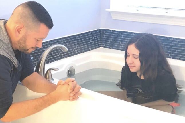 Añadió: “¡Le pregunté que si quería eso podía ser ya! Entonces ayer, en presencia de testigos (familia y amigos) online , y con la cobertura de nuestro amigo el Pastor Pochy García y su esposa Wendy Samayoa, la bautizamos en casa en el nombre de Jesucristo”.