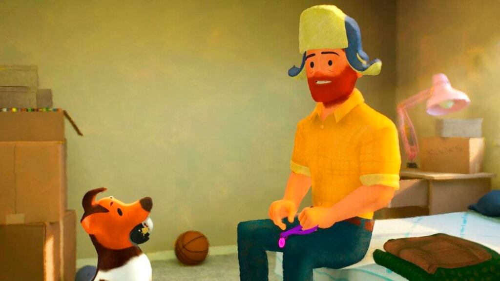 Hunter escribió y dirigió la película de Pixar de nueve minutos que debutó recientemente en Disney Plus. La cinta se trata de un hombre llamado Greg que cambia temporalmente de cuerpo con su perro, Jim, mientras empaca para mudarse. Mientras Greg trata frenéticamente de ocultar la evidencia de su novio, Manuel, encuentra el valor para revelar su orientación sexual a sus padres.
