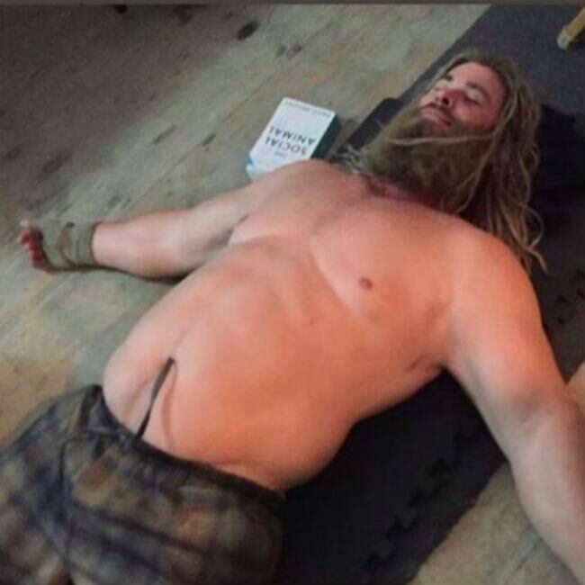 El texto que publicó la también gurú de la vida saludable cobra todo el sentido del mundo si uno se fija atentamente en la imagen que publicó para completar su publicación. En ella aparece un Chris Hemsworth completamente diferente al que estamos acostumbrados a ver en la gran pantalla pero, eso sí, muy relajado mientras descansa en el suelo: desaliñado, barbudo y luciendo una abultada pero musculosa panza.