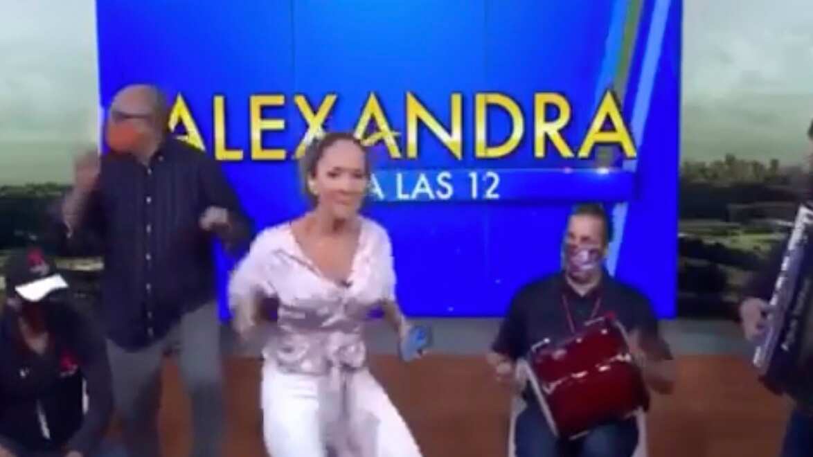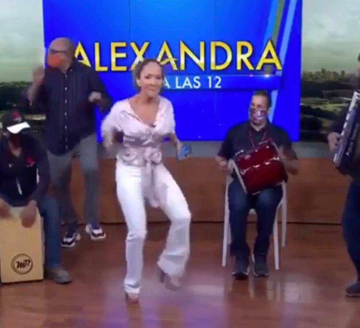 “Aunque se te caigan los pantalones😄 Gracias a mi banda “La Misma” por la excelente demostración musical que dimos ayer. ¡Crédito a ellos! Danny Rosa en el acordeón Robert Rosa en el güiro, Julito en el cajón, Chowey en la tambora y Herbert corista” (sic), publicó por su parte la presentadora del Programa Alexandra a las 12 en su cuenta de Instagram.