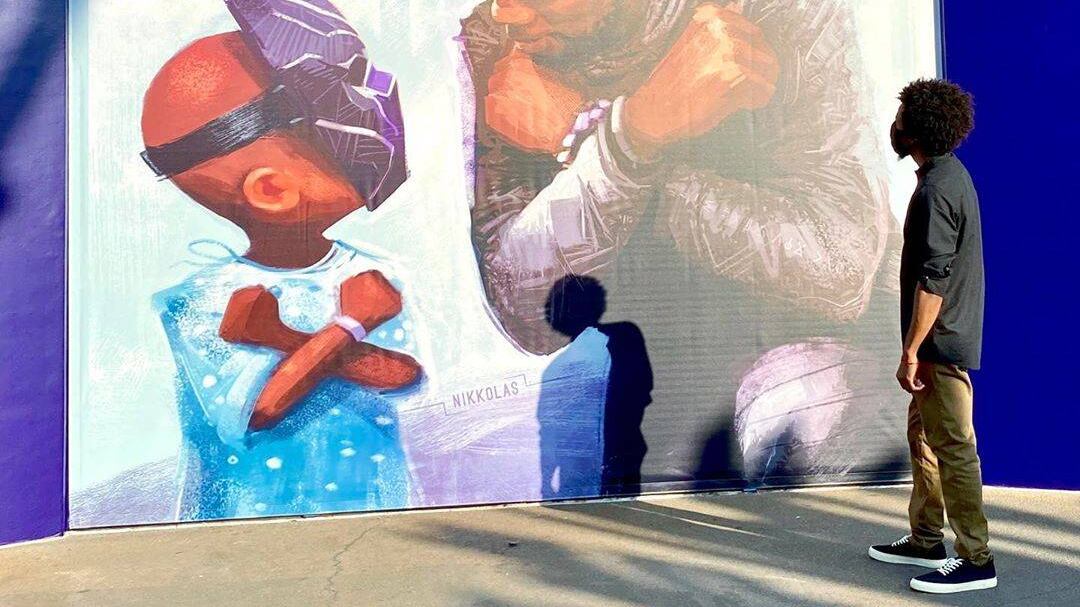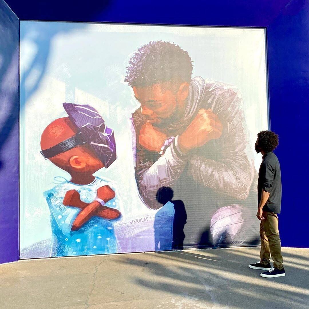 El mural se encuentra en el Downtown District de Disneyland, el parque de Anaheim, California. Es particularmente emotivo dado que Boseman murió de cáncer de colón y, pese a ello, siguió trabajando en la producción de Pantera Negra.