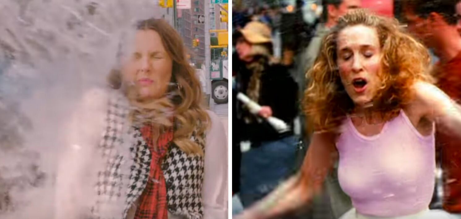En un video de YouTube podemos ver como Drew Barrymore se convierte en Carrie Bradshaw en el famoso intro de la serie. La moda, Nueva York, las poses y el ser salpicada por agua, nada le faltó a la actriz que comenzará a trabajar desde niña en la famosa cinta E.T.