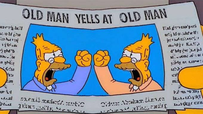 En un episodio de la serie aparece un recorte de periódico con Abraham Simpson que reza: “Anciano grita a una nube”. Un usuario modificó la escena, de modo que el personaje aparecía por duplicado y se podía leer: “Un anciano grita a otro anciano”.