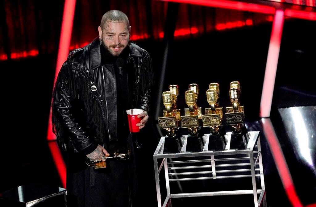 Tras dar a conocer que Malone se alzó con el máximo honor de la noche, a mejor artista, Clarkson le entregó ocho trofeos más al cantante.