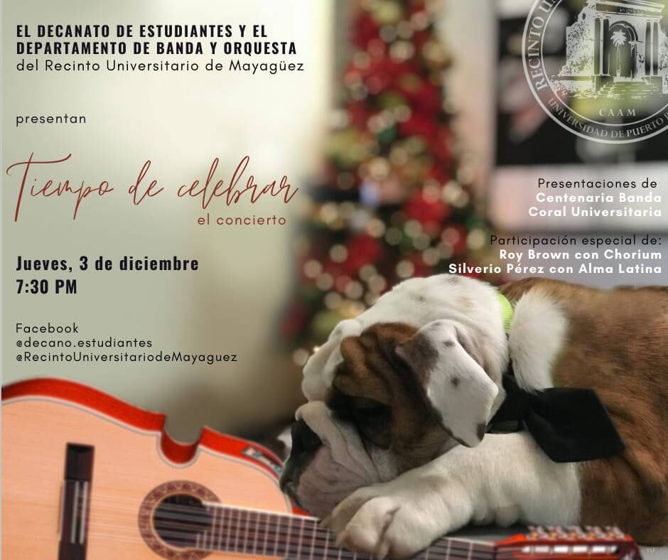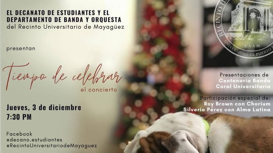 El Recinto Universitario de Mayagüez (RUM), de la Universidad de Puerto Rico (UPR), presentará su primer concierto virtual de fin de semestre, “Tiempo de celebrar”, a cargo de las principales agrupaciones musicales estudiantiles y la intervención especial de Roy Brown y Silverio Pérez. La histórica velada musical se transmitirá mañana, jueves, 3 de diciembre a las 7:30 PM, a través de la página oficial institucional de Facebook.