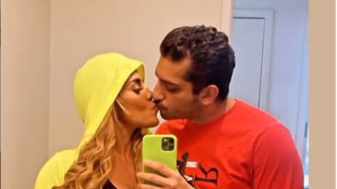 La imagen compartida por la modelo se les ve besándose
