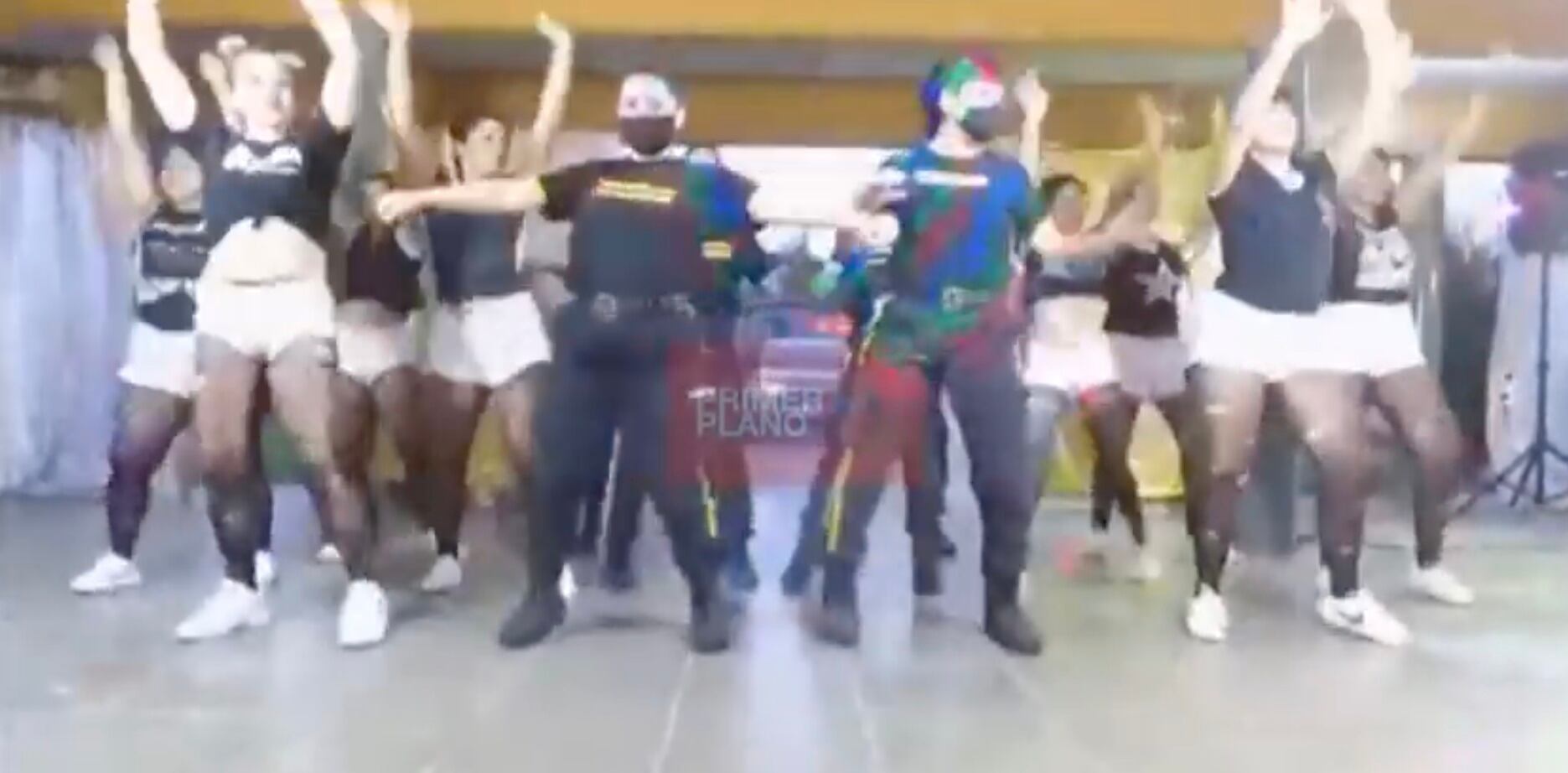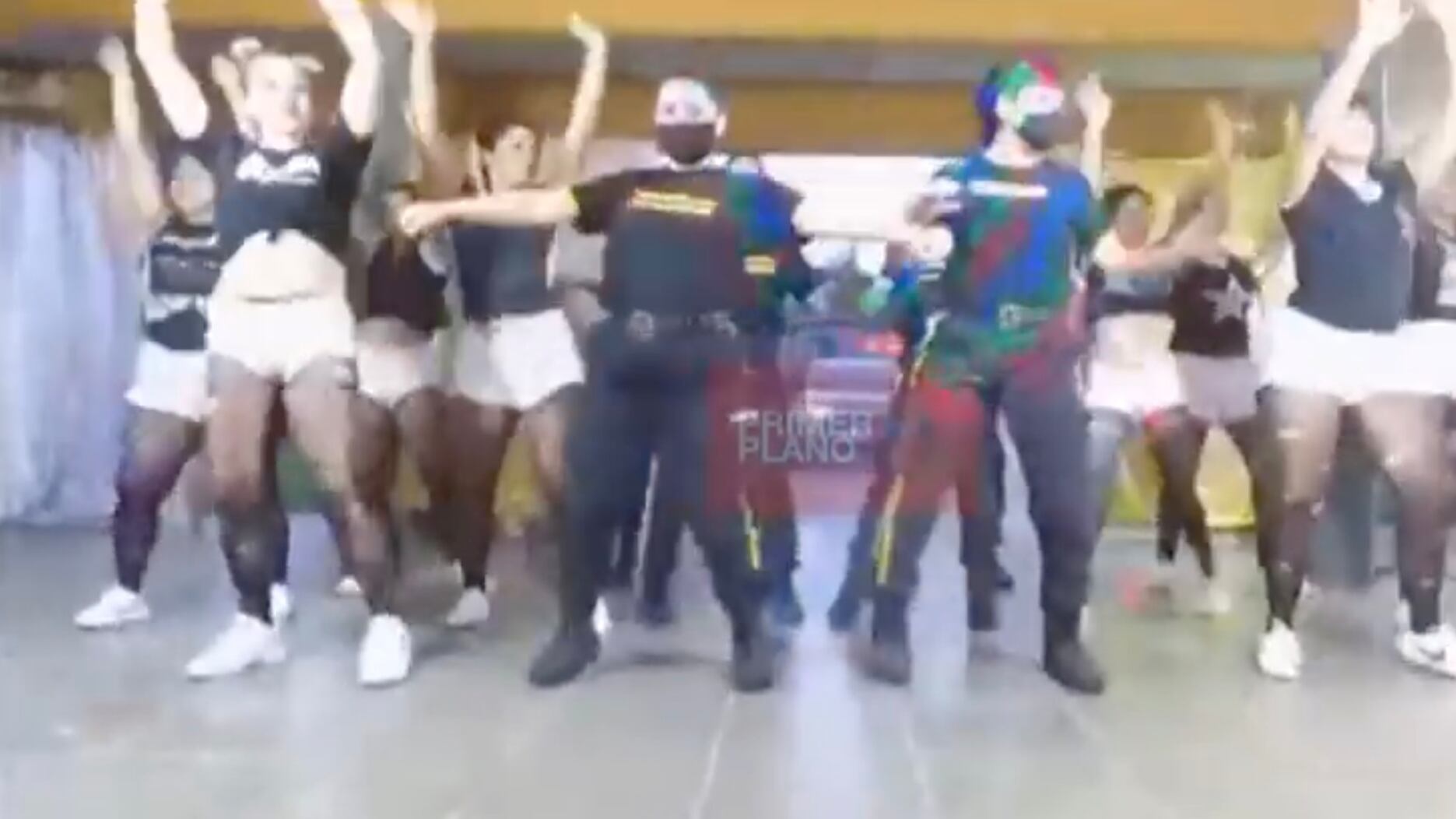 De acuerdo a TN, las internas serían las jóvenes que aparecen vestidas con shorts blancos y camisetas negras mientras que las guardias llevaban su propio uniforme y mascarillas.