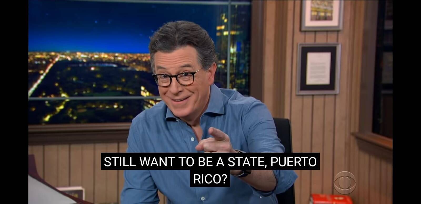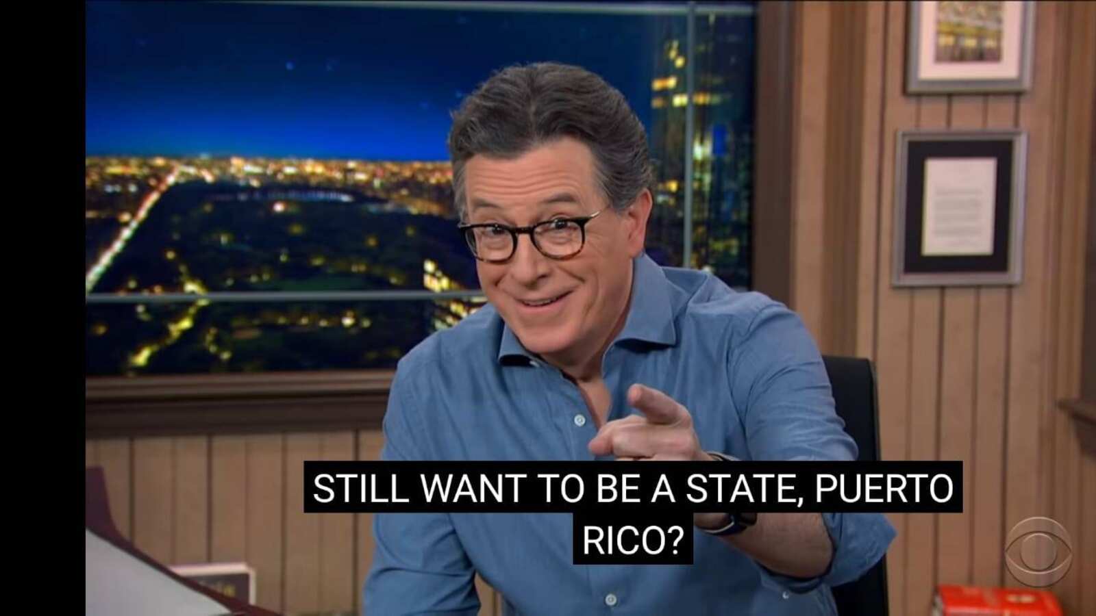 El comediante estadounidense Stephen Colbert, hizo una referencia a Puerto Rico y su intención de alcanzar la estadidad durante su monologo inicial de su reconocido programa “The Late Show”.