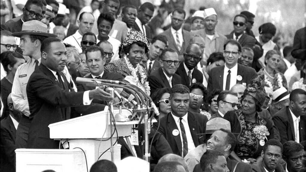 La marcha culminó en uno de los momentos más indelebles del movimiento por los derechos civiles, el discurso “Tengo un sueño” de Martin Luther King Jr. frente al Lincoln Memorial. La familiar escena no podría contrastar más con la reciente revuelta en el Capitolio. Aquí, una masa humana es congregada con el espíritu pacífico del líder del movimiento.