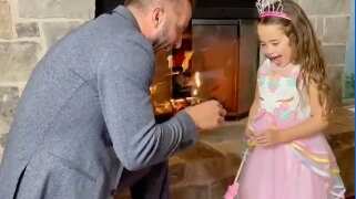 En el video compartido por Barea se ve a Paula vestida con un traje de princesa acercarse a su papá quien le tenía una sorpresa.