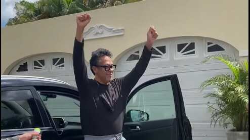 En un video compartido en redes, se ve al pastor bajando del carro mientras su familia celebra con bombas y confeti su llegada.