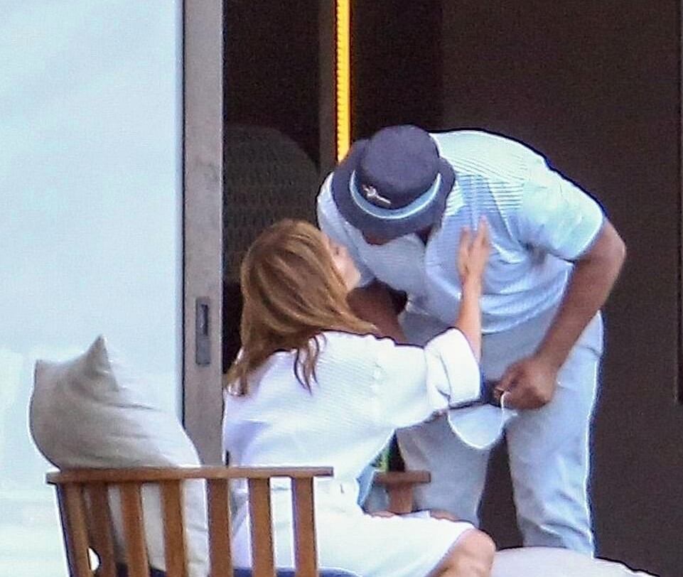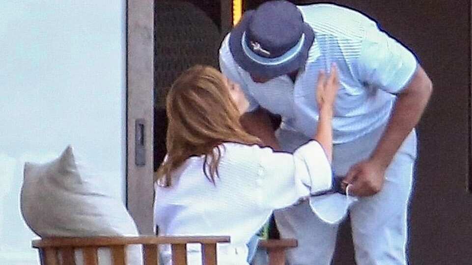 En el video compartido por el medio, se ve al ex beisbolista atravesando una puerta de cristal de la casa donde se hospedan, y salir al patio donde se encontraba López, fue entonces cuando compartieron un tierno beso.