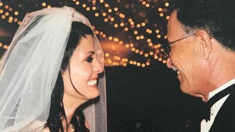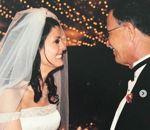 La también presentadora compartió una tierna imagen junto a su padre el día de su boda, donde a ambos se les ve muy felices.