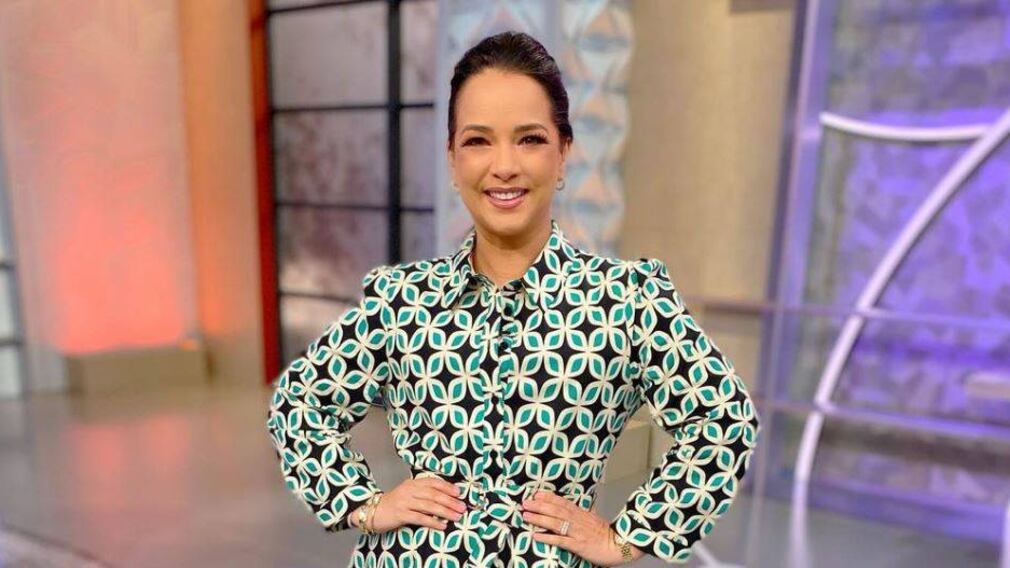 Con una publicación en su cuenta Instagram, el programa celebró la vuelta de Adamari, quien enamoró a la audiencia con un vestido corto de color verde con un estampado de flores azules y falda plisada.