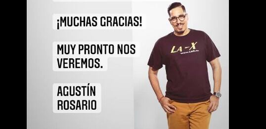 El productor y locutor, Agustín Rosario, anunció a través de sus redes sociales que dejará el programa “La terapia” (La X) para dedicarse de lleno a otros proyectos.