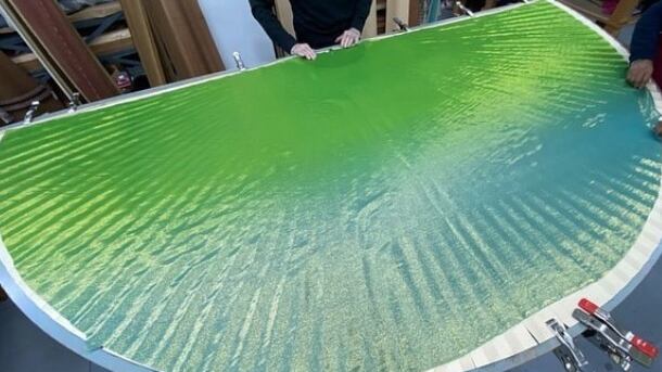 El vestido, confeccionado por Ecliptica, es de tonalidad verde y estilo holgado.