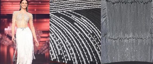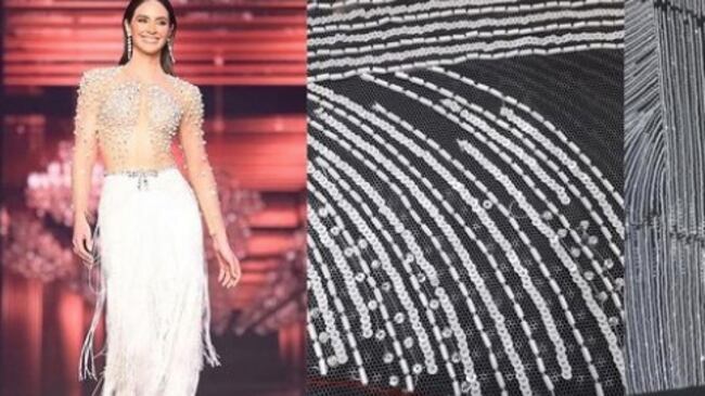 El vestido de colores claros con una falda en flecos fue catalogado por expertos y seguidores de concursos de belleza como uno de los mejores durante el dicho evento.
