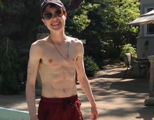 Ahora el actor se mostró por primera vez en traje de baño, dejando al descubierto su torso, y exhibiendo un abdomen marcado, así como las cicatrices de una cirugía para eliminar sus senos como parte de su proceso de transición.