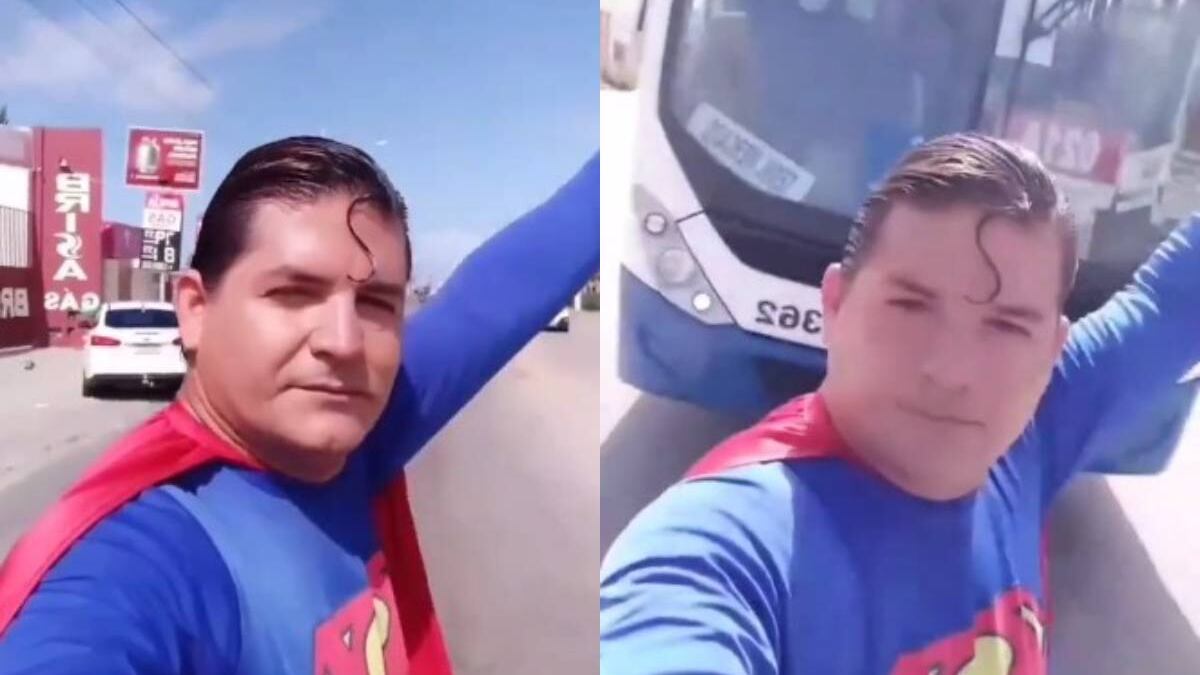 Un comediante brasileño intentó detener un bus con la mano, mientras estaba disfrazado como Superman.