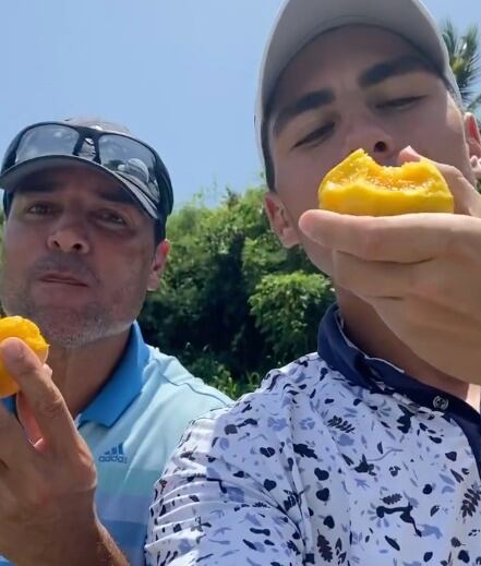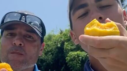 En imágenes compartidas por Lorenzo en redes sociales, se les ve sonrientes mientras disfrutaban comiendo mangos del país.