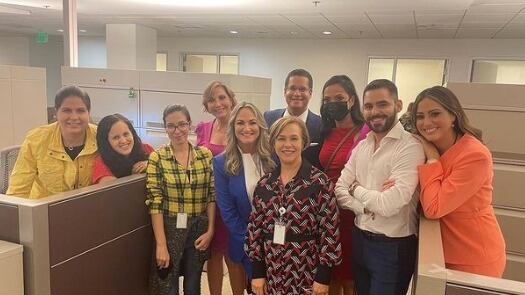En la imagen se ve a Celimar Adames y Ricardo Currás, quienes serán los anclas del noticiario. Además, a la periodista Nuria Sebazco.