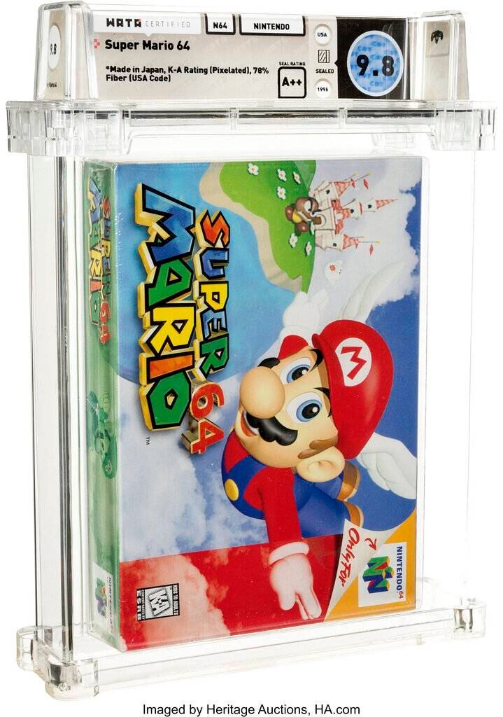 Una copia sin abrir del videojuego Super Mario 64 de Nintendo fue subastada en $1.56 millones.