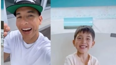 En las imágenes, se observa al pequeño bailar una canción del artista y pedirle que le envíe un saludo.