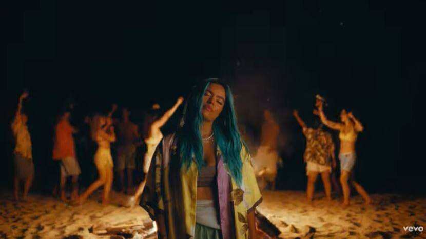 En el clip la colombiana sale en una fiesta en la playa, una fogata con todos alrededor es el complemento, mientras ella está de espaldas a ellos como si estuviera reflexionando.