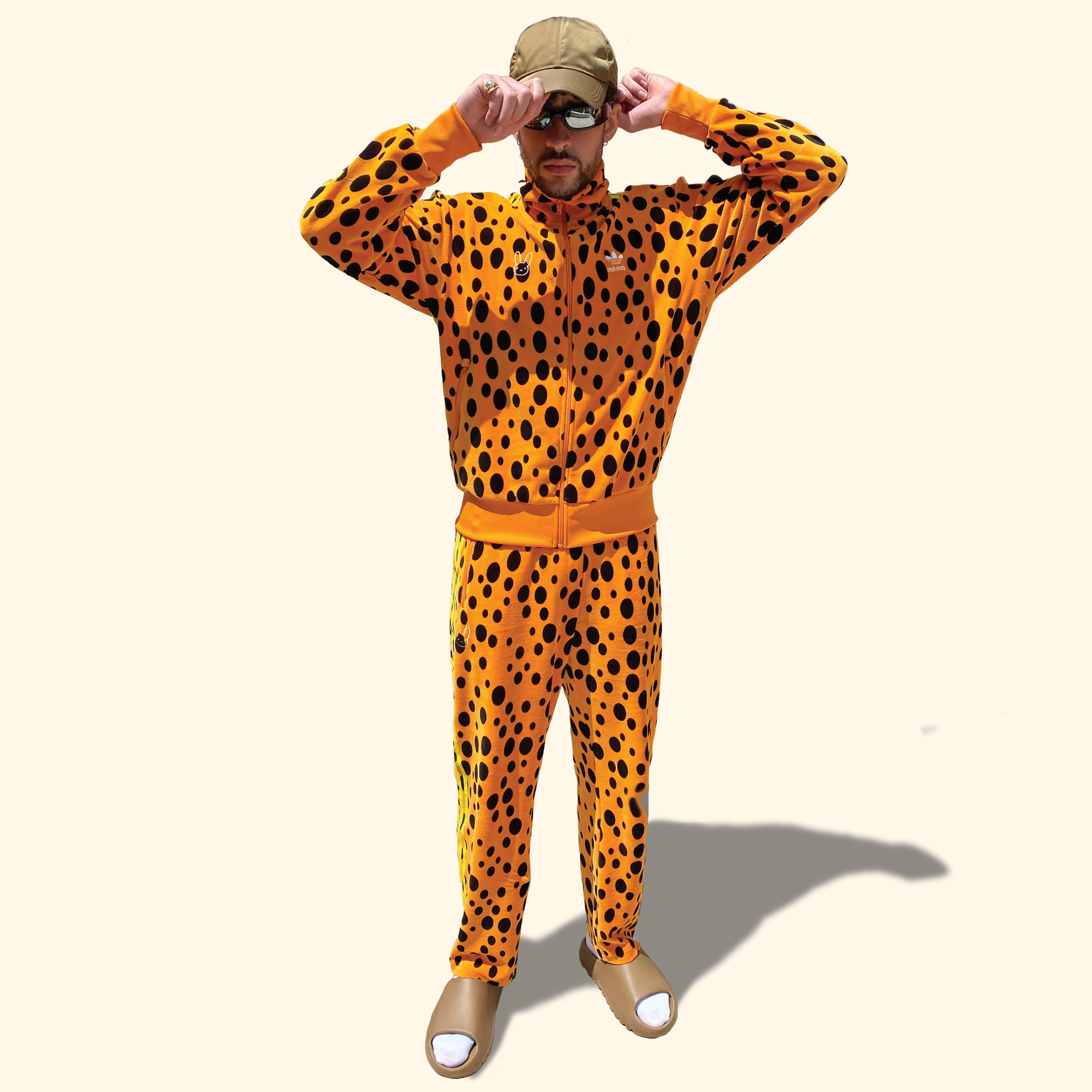 La colección limitada de ropa deportiva de Adidas es el producto de la unión del estilo característico de Bad Bunny, combinado con el “Cheetos Look” de Chester con temática color naranja.