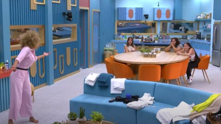 El momento ocurrió ante las miradas atónitas de las actrices Gabriela “Gaby” Spanic y Gisella Aboumrad, quienes conversaban con Lora en la zona del comedor.