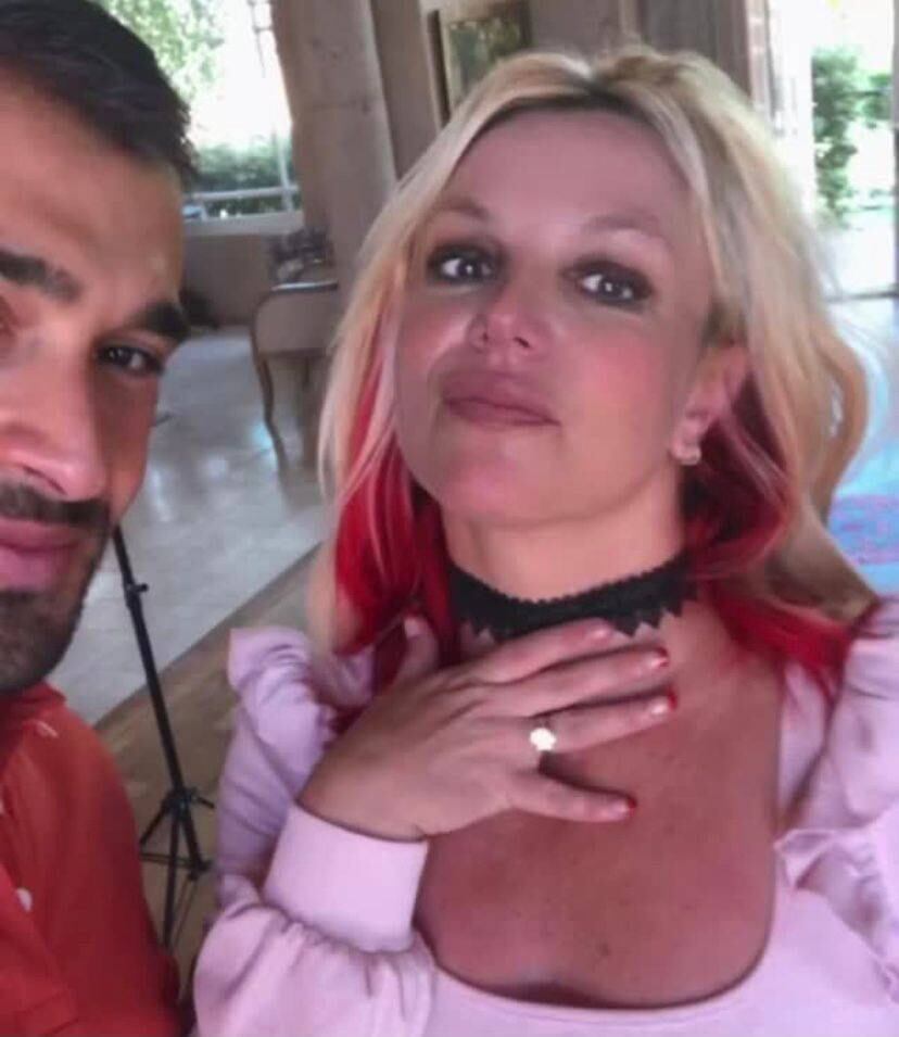 Asghari publicó su propia foto de Spears mostrando el dedo anular a la cámara.