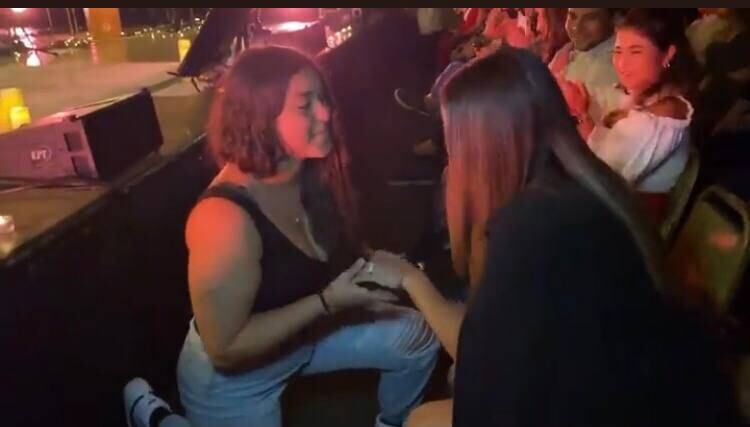 Mientras la cantante entonaba “Lo Que En Ti Veo”, las jóvenes oficializaron su compromiso.