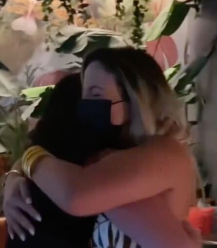 Torres viajó desde Los Ángeles para sorprender a su hermana por su cumpleaños en un restaurante de la ciudad donde se disponía a compartir con el resto de su familia.