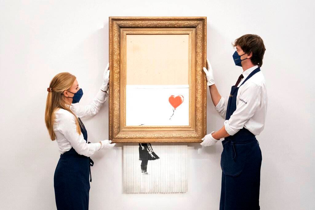 Entonces conocida como “Girl With Balloon” (“Niña con globo”), la obra se vendió en Sotheby’s en octubre de 2018. Justo cuando un comprador europeo anónimo hizo la oferta ganadora, una trituradora oculta instalada en el marco por Banksy cobró vida, dejando la mitad del lienzo colgando del marco en tiras.
