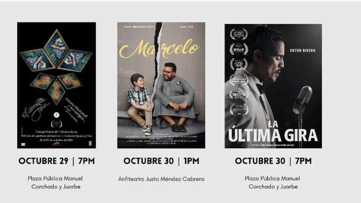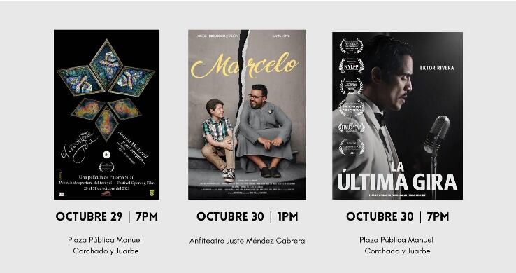 La plaza pública Manuel Corchado se vestirá de cine con la presentación de la trayectoria del artista Antonio Martorell a través del documental El Accidente Feliz y así como la película La Última Gira que cuenta la historia del cantautor Daniel Santos.