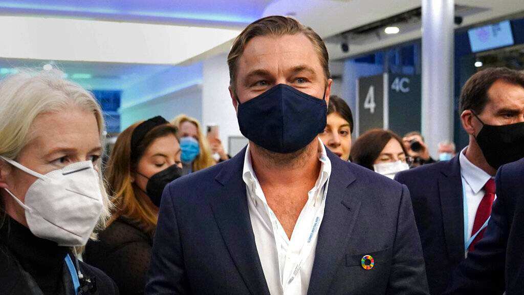 El actor, un activista por el cambio climático de la ONU, fue fotografiado en la conferencia el martes luciendo un traje azul y una mascarilla oscura. Un séquito y una multitud de personas que esperaban obtener fotos de DiCaprio en sus teléfonos móviles lo rodearon.