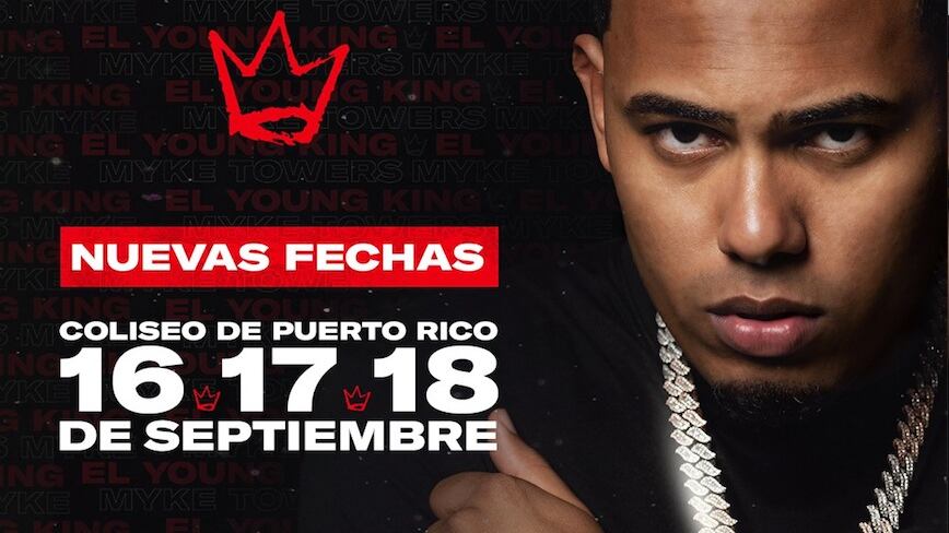 Ante la alta incidencia de contagios de COVID-19 los productores a cargo de las presentaciones de la gira de conciertos “The Young King: The Tour” del artista urbano Myke Towers, quien se presentaría los días 20, 21 y 22 de enero en el Coliseo de Puerto Rico José Miguel Agrelot han decidido posponerlas.