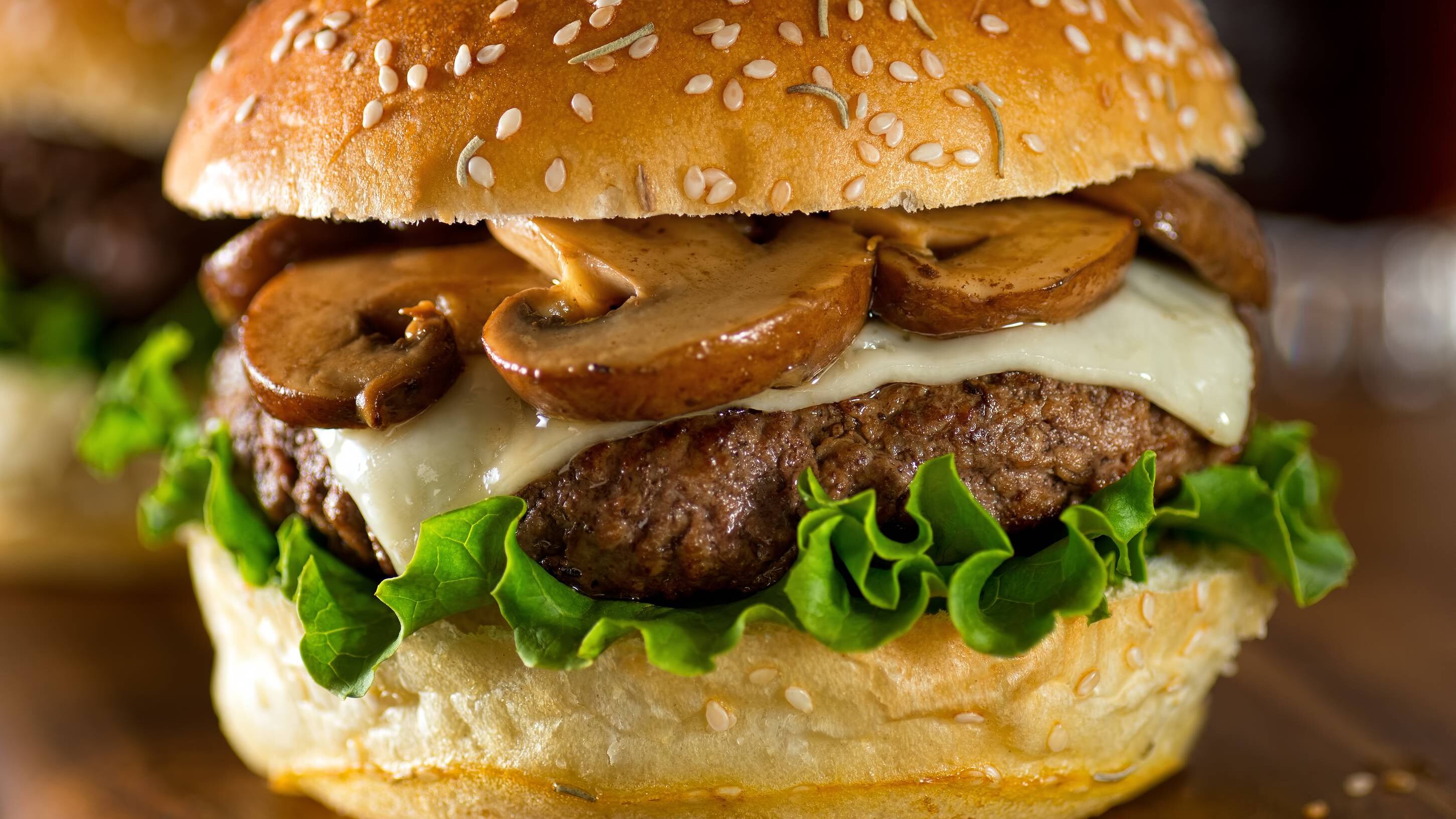 -Sirva la hamburguesa en el pan y coloque la salsa con setas sobre la hamburguesa.