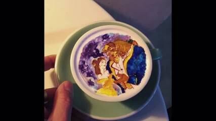 Kangbing pinta diseños de personajes de dibujos animados, flores, escenas o cualquier cosa que le guste encima de la bebida caliente.