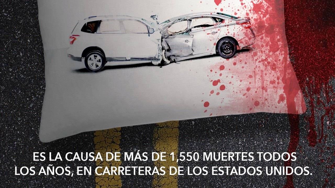 En medio de la almohada aparece una foto que se cambiará semanalmente, mostrando un choque entre dos vehículos, un niño que fue arrollado mientras corría su bicicleta, entre otros escenarios impactantes, que buscan crear conciencia sobre las consecuencias potenciales de quedarse dormido al volante.