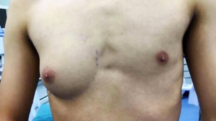El joven notó el crecimiento de su glándula mamaria derecha hace seis años, pero nunca pensó en buscar tratamiento, hasta que el tamaño del seno alcanzó una copa A.