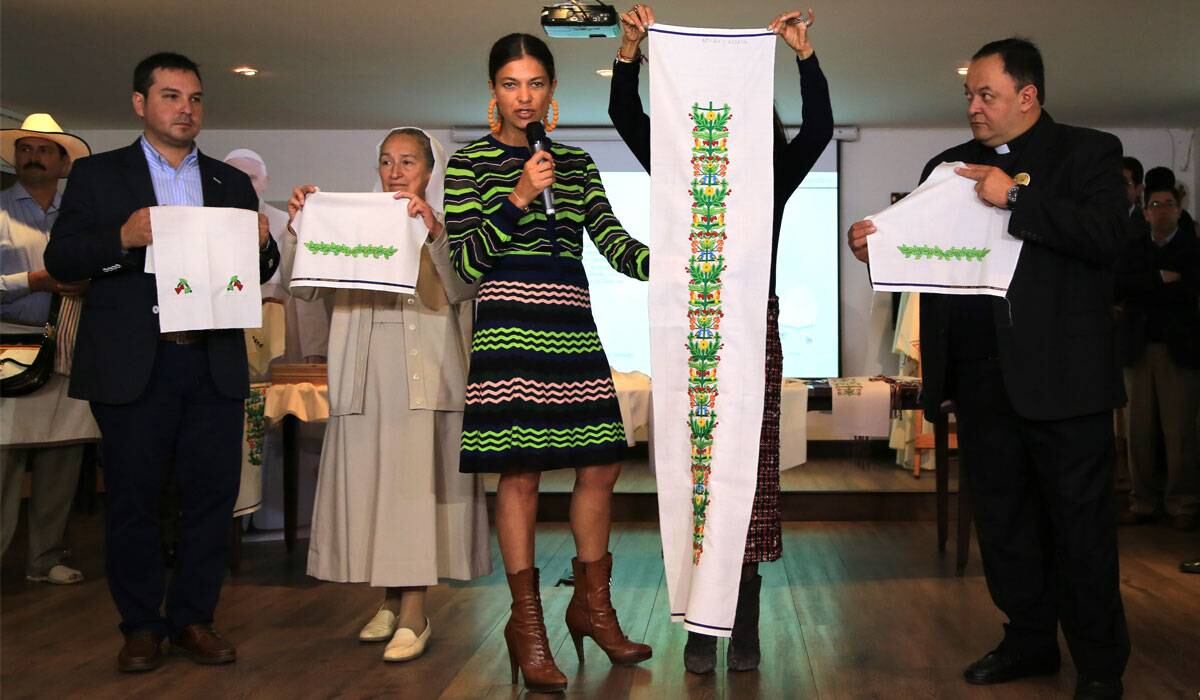 Así, la periodista experta en moda, Pilar Castaño y la afamada diseñadora de joyas y accesorios Mercedes Salazar se encargaron de traducir en piezas exquisitamente elaboradas (y asimismo cargadas de simbología) los conceptos de identidad del país en las casullas, mitras, estolas y otros elementos que conforman las vestimentas usadas por el papa en los oficios religiosos a través de diversas técnicas ancestrales.