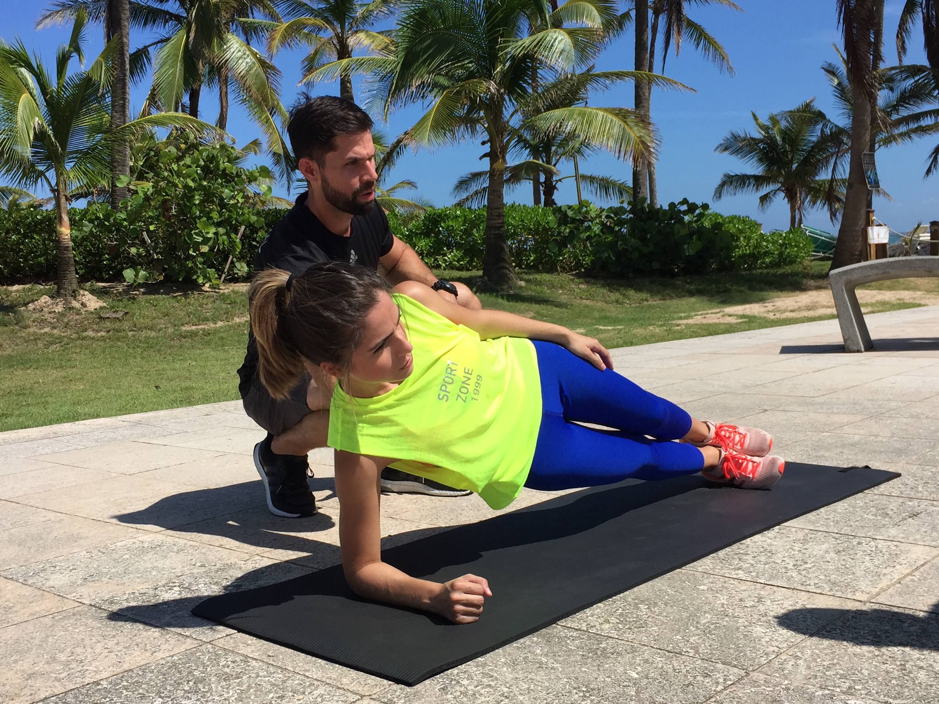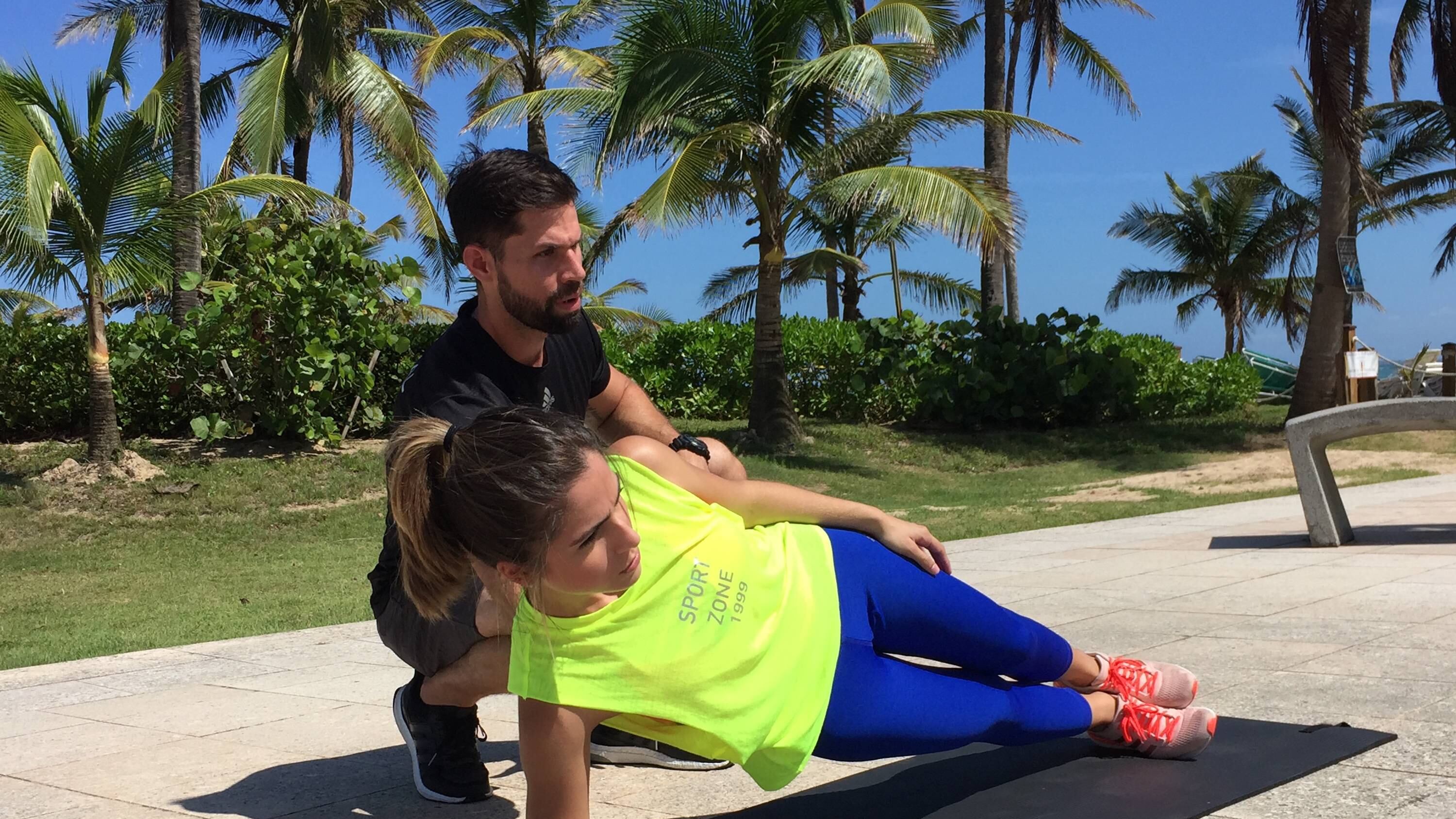 “Trabaja completo, el pecho, los hombros, los deltoides, ese es de mis ejercicios favoritos”, apuntó el entrenador. Para el abdomen, el ejercicio idóneo en la casa o al aire libre es el plank o “la plancha”. También puedes practicar este ejercicio en posición lateral o “plancha de lado”.