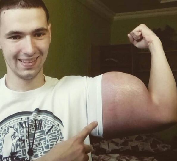 El oriundo de Pytagorsk lleva cerca de un mes mostrando la evolución diaria de sus brazos, aunque el ejercicio no es responsable de su crecimiento, sino las inyecciones de Synthol.