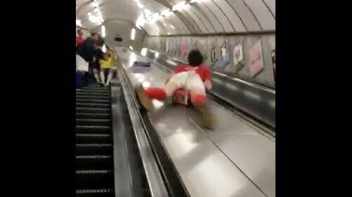Luego de un partido de fútbol se fueron de copas y totalmente ebrio llegaron a una estación de metro. Ahí se le ocurrió la brillante idea de deslizarse entre dos escaleras mecánicas.