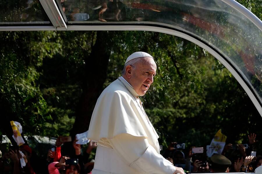 Sin embargo, cuando llegaba al lugar sufrió un inesperado problema luego que sufriera una agresión mientras iba en el papamóvil. Esto debido a que alguien le lanzó un diario, el cual impactó de llenó en el rostro de Francisco.