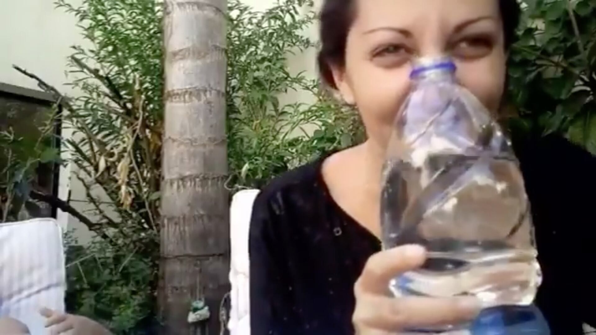 La madre apreta la botella y el agua salta a la cara de su hijo quien solo atina a decirle, “mamá … por qué?”.