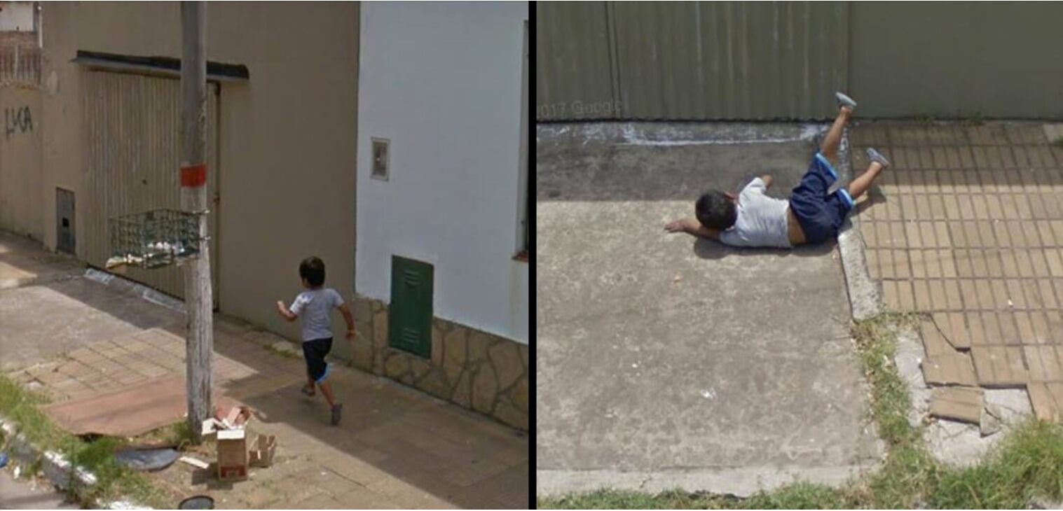 Durante los últimos días se ha vuelto viral en las redes sociales la siguiente imagen captada por las cámaras de Google Maps, en las que se aprecia a un niño corriendo, quien termina en el suelo tras tropezarse.