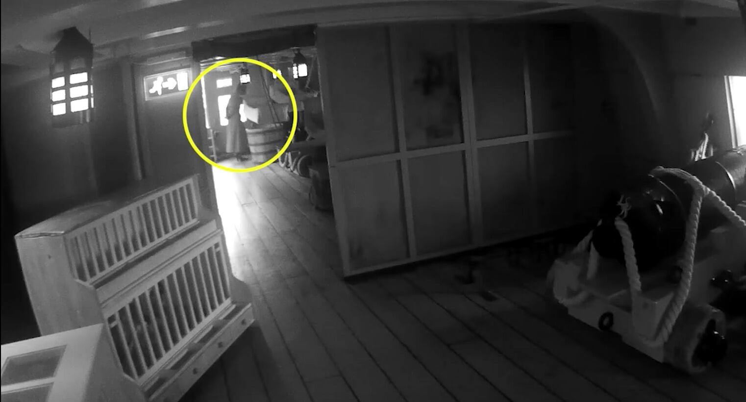 Un video que circula en redes sociales es el de una figura fantasmal capturada por un joven de 33 años de edad, donde se aprecia al espíritu rondando por el barco.
